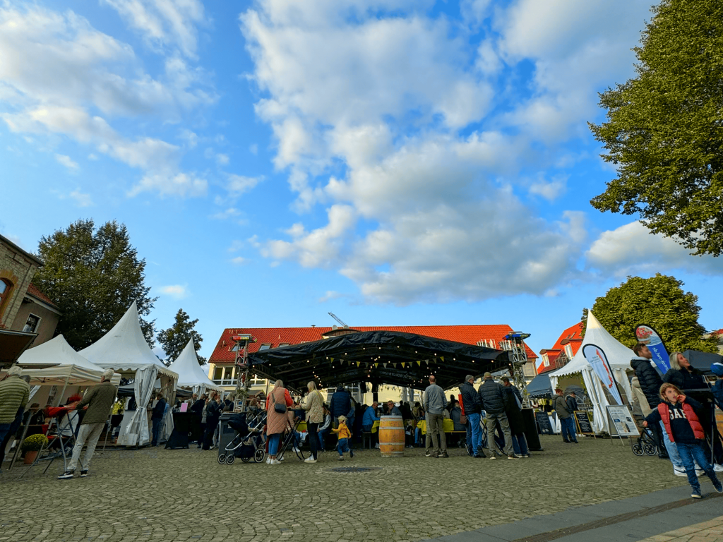Jedes Jahr, Mitte September, verwandelt sich der Rathausplatz in Oerlinghausen in ein kleines aber feines Weindorf. Freut euch auf leckere Tropfen und kulinarische Leckerbissen in entspannter Atmosphäre. Vor der Kulisse des illuminierten Rathauses erwartet Euch unsere gemütliche – rund 150 Quadratmeter große – Weinlounge.