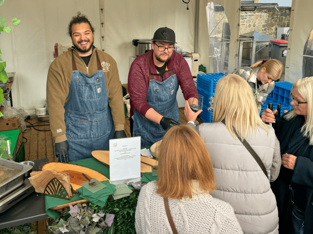 Nicht nur Weine aus Deutschland, Italien, Kroatien oder Chile findet Ihr auf dem WeinBergfest – auch leckere Speisen, wie Flammkuchen, Pasta aus dem Parmesanleib oder Burger. Genuss garantiert!